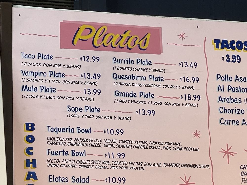 1 Vampiro and 1 Taco with Rice, Beans and a side of chips.